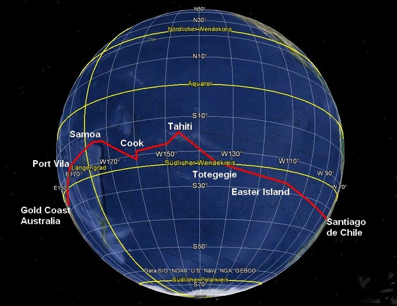 Im dritten Abschnitt von Australien bis Südamerika geht es dann über das große Wasser der